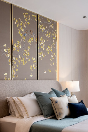 The interior design expresses togetherness for this multi-generational family while embracing each member’s individuality. The customised storage solutions cater to each family member's practical needs and passions. For instance, boutique-style glass cabinets cater to the daughter’s bag collection. Neutral hues, colours guided by feng shui and touches of gold thread across the interiors. The result is a sensitive balance between familial warmth and luxury. The project is also a collaboration with the homeowner, the founder of Grandwork Interior, whose team executed the implementation of premium designs with meticulous craftsmanship.